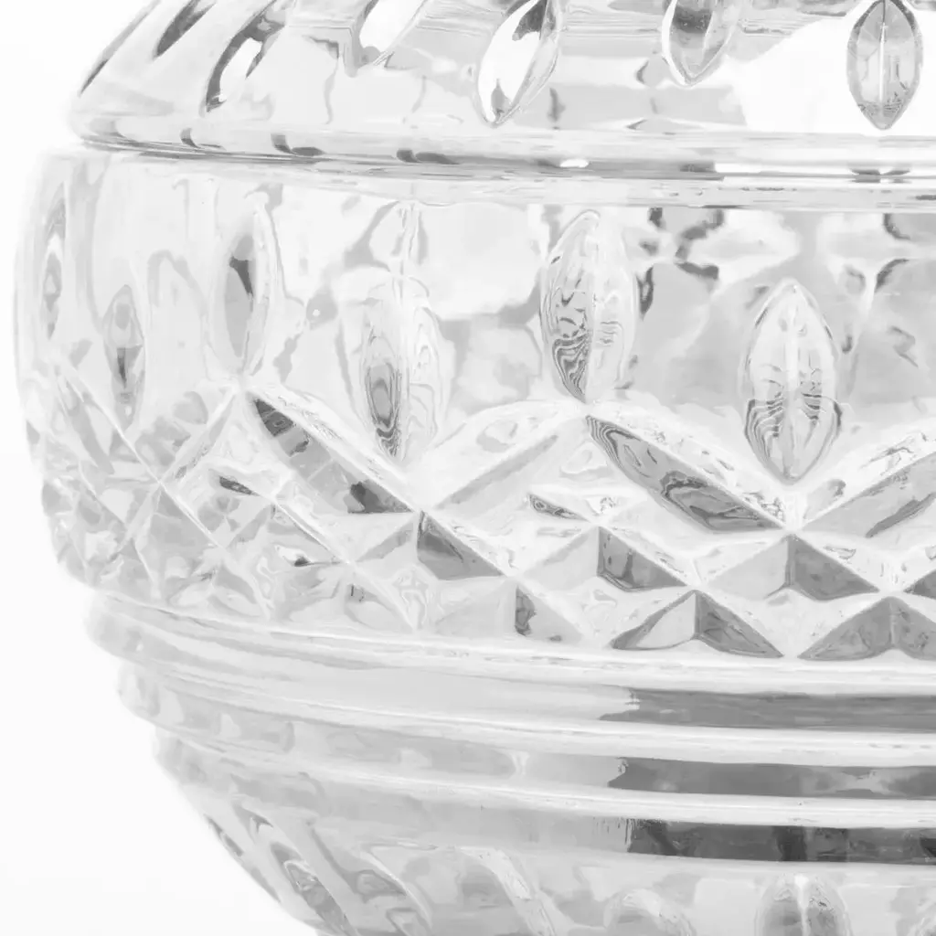 Com um design clássico e atemporal, este potiche é uma adição encantadora para qualquer ambiente. O cristal transparente proporciona um visual refinado e permite que a luz dance através dele, criando belos reflexos.