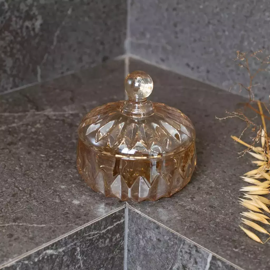 Bomboniere Potiche Decorativo de Cristal Louise Âmbar Metalizado 11cm x 11cm - Wolff