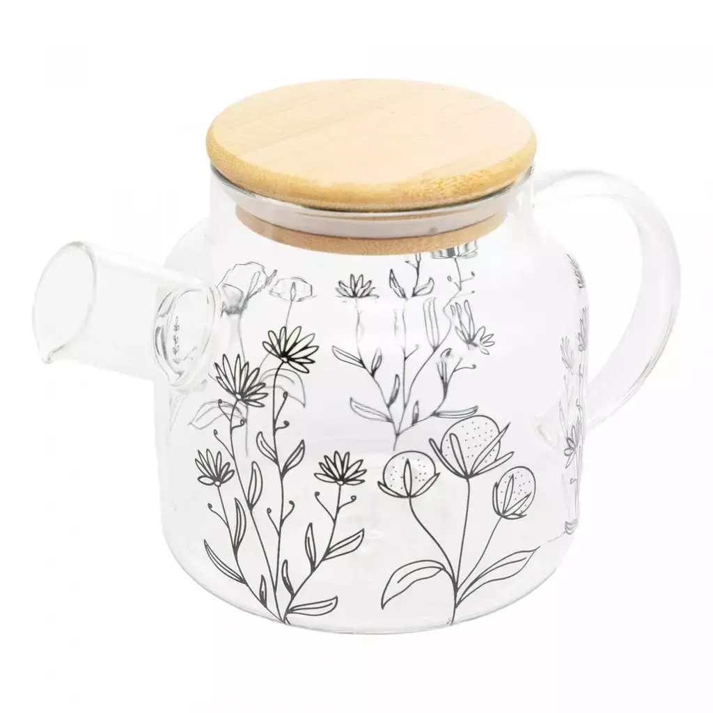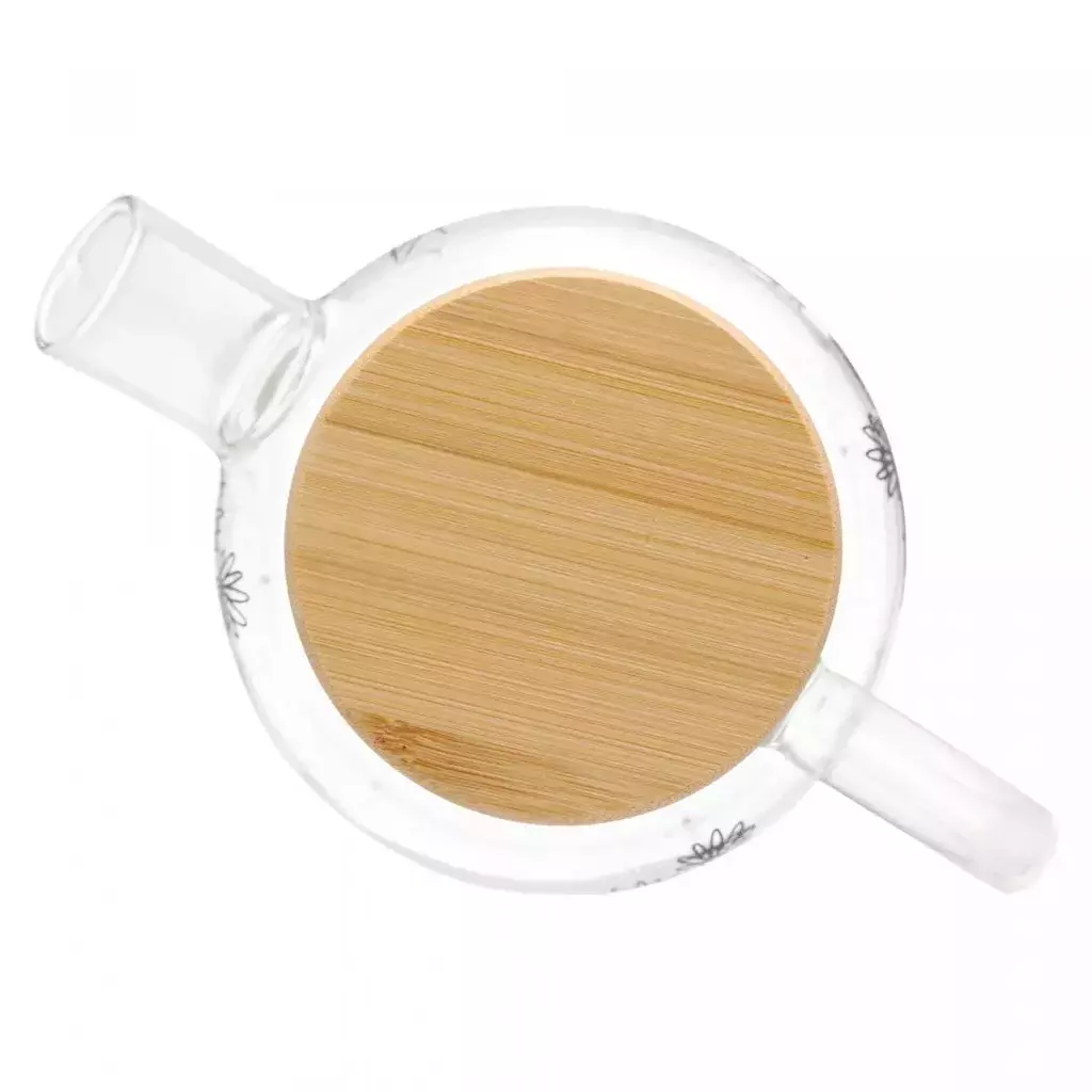 1 Chaleira de Vidro Borossilicato com Tampa de Bambu Flor 600ml - Wolff